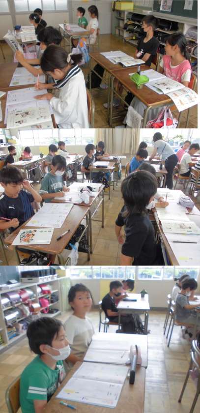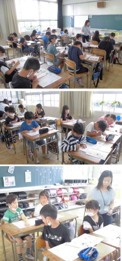 姿勢と鉛筆の持ち方に気をつけ、一画ずつていねいに書いています。どの子も、心を落ちつけて書いています。