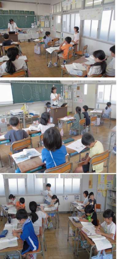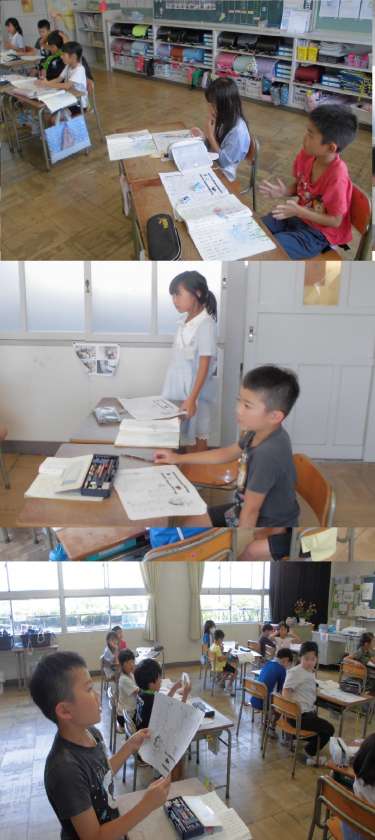 すばらしい海の生き物を見て、スイミーはどんな気持ちになったかを考えて発表しています。