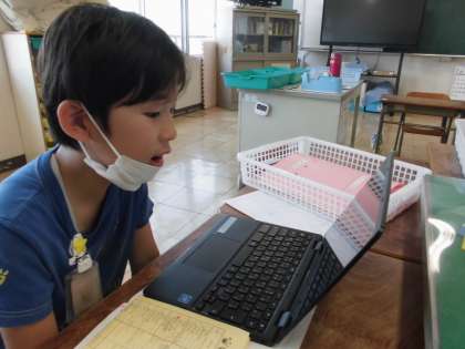 国語で給食日記に取り組むと、メニューに十六ささげと書いてあり、どんな食べ物か調べてみました。給食時にはおいしそうに食べていました。