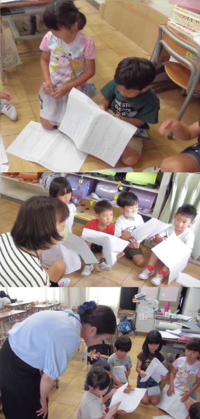 劇の発表会に向けて、グループに分かれて練習をしています。