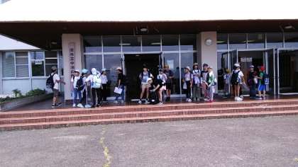 野外教育活動 〜グリーンОL〜【7月11日(火)5年生】 公開日 2023/07/11 更新日 2023/07/11 5年 グリーンオリエンテーリングに出かけます。こまめな水分補給に心がけ、熱中症に気をつけて出発です。