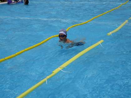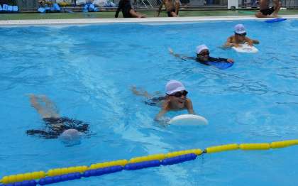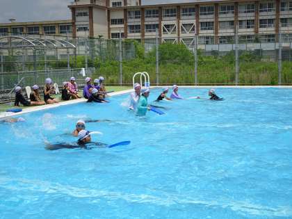 今日は、ビート版を使ってバタ足や息継ぎの練習をしたり、何メートル泳げるか試したりと自分の力に合わせたコースで練習をしました。そのあと、水の中に落ちている物を拾う宝探しや、じゃんけん列車などにも取り組み、笑顔いっぱいの水泳の時間でした。