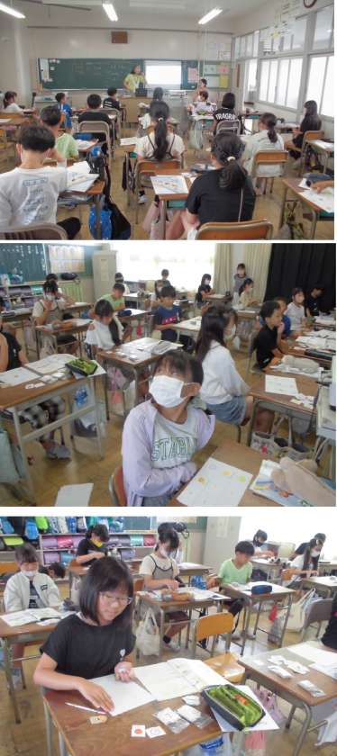 野菜・果物・時間(時計)の英語を使って、ビンゴゲームをしています。