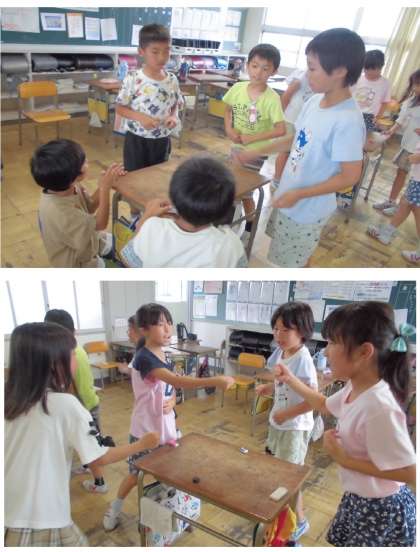 学級委員さんの企画・運営で、お楽しみ会が進められています。進化じゃんけんゲーム、消しゴム落としゲームなどを行い、笑顔があふれる会となっています。
