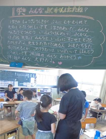 1学期最後の登校です。クラスのみんなで力を合わせてがんばった1学期でしたね。今日も、元気いっぱいの2年生です。