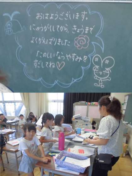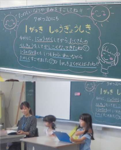 入学式からよくがんばった1年生のみなさん。2学期もがんばりましょう。