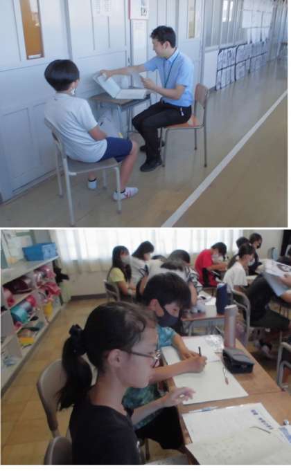 1学期を労いながら、あゆみを一人一人に手渡しています。