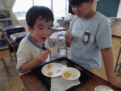 活動の様子【7月20日(木)のたんぽぽ】 公開日 2023/07/20 更新日 2023/07/20 たんぽぽ 1学期終業式をみんな揃って迎えることができました。 あゆみを受け取ってから、ガーデンサポーターさんが調理してくださった2種類のジャガイモをいただきました。ごちそうさまでした。