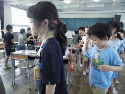 活動の様子【9月7日(木)のたんぽぽ】 公開日 2023/09/07 更新日 2023/09/07 たんぽぽ 音楽の時間です。「ジェットコースター」の歌を練習した後、みんなで輪になって歌いながら回りました。「ビューン」という歌詞のところで、座ったり立ったりの動きが入り、楽しそうに活動していました。