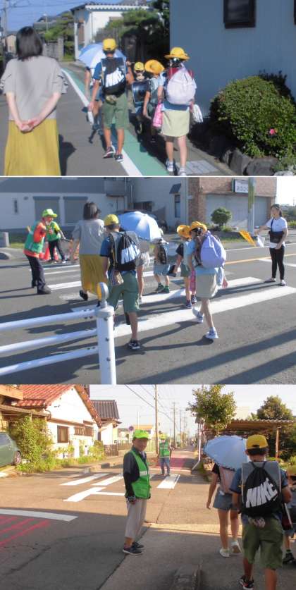 登校です【9月13日(水)全児童】 公開日 2023/09/13 更新日 2023/09/13 児童 今日もたくさんのPTAの方々、見守り支援の方々に守られて登校を終えることができました。ありがとうございました。今日の下校は、1年と2年が14:55、3年〜6年が15:50の予定です。よろしくお願いします。