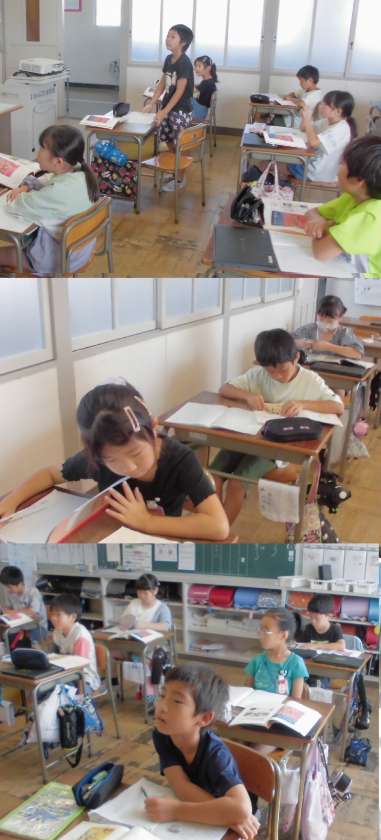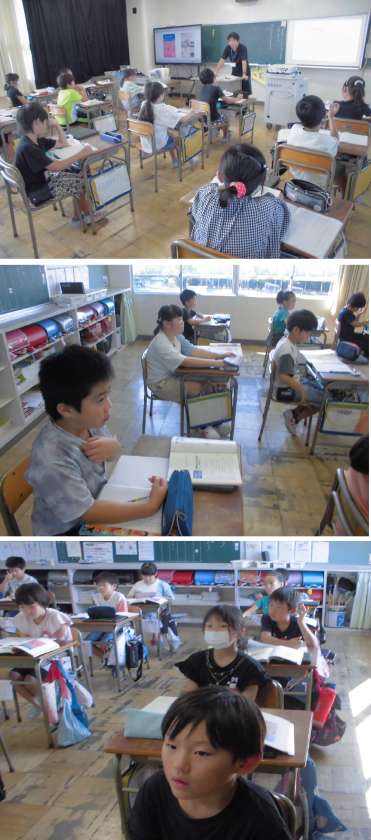 同じことを伝えるポスター2種類を見比べ、違いがある理由を考えています。