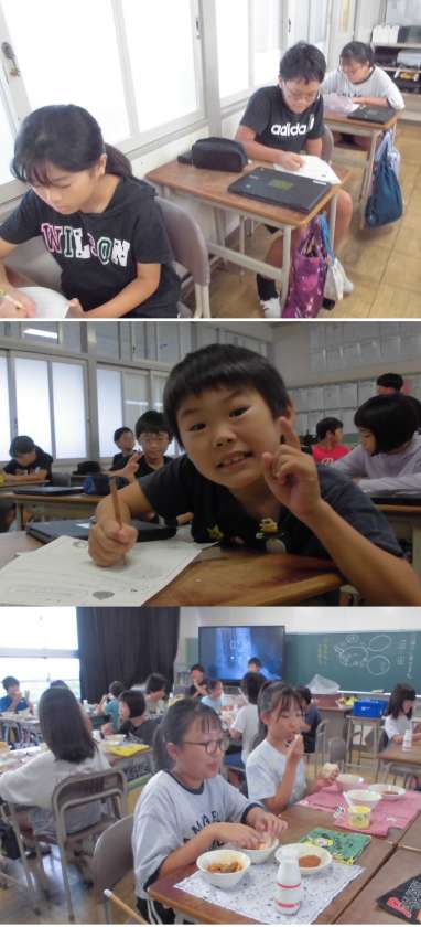 笑顔いっぱい給食〜食品ロスをなくそう〜【9月21日(木)5年生】 公開日 2023/09/21 更新日 2023/09/21 5年 午前の授業で食品ロスについて考えました。給食では、この学びを意識していました。
