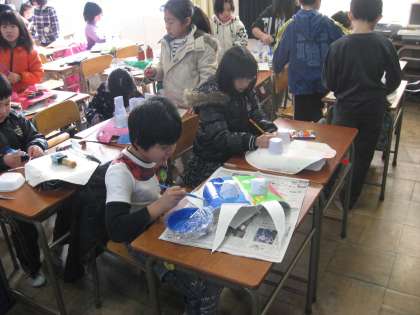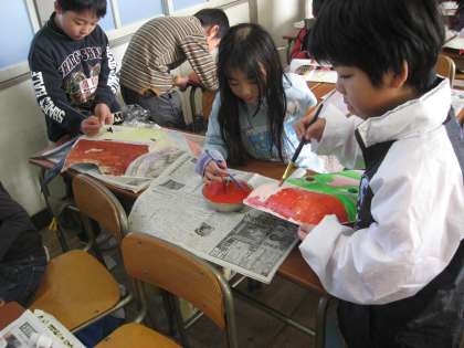 今、子どもたちは「おめん」を作っています。