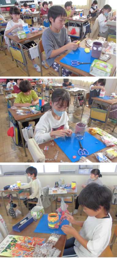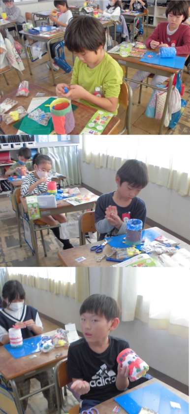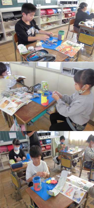 紙粘土で、空気容器を小物入れに変身させようとしています。