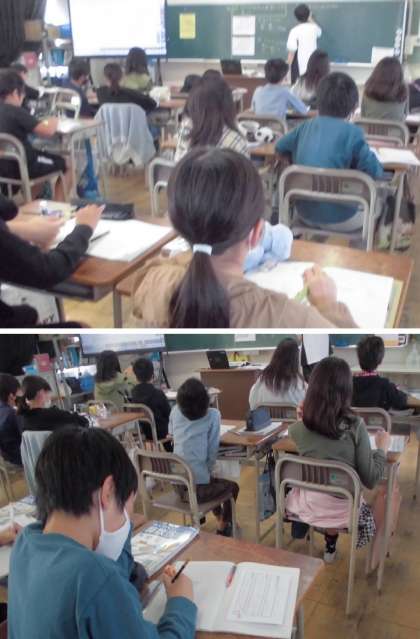 平行四辺形の面積を求める公式づくりに取り組んでいます。