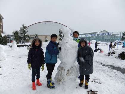 雪遊びをしました!(1月17日の4年生) 公開日 2011/01/17 更新日 2011/01/17 4年 久しぶりにたくさんの雪が積もり、子どもたちは朝から大はしゃぎ! 4年生は外に出て雪遊びを行いました。 雪合戦をしたり、雪だるまやかまくら作りをしたりして、寒さも忘れ楽しみました。