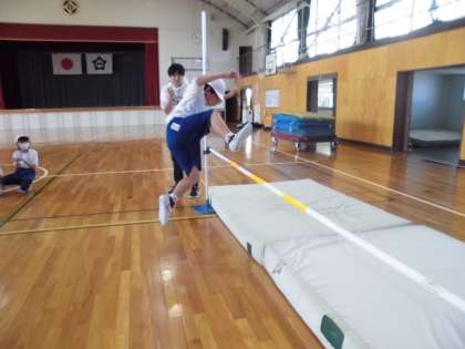 4年生の屋運での体育は、今日から棒高跳びです。棒の位置が高くなっていくとドキドキしていましたが、頑張って練習していました。
