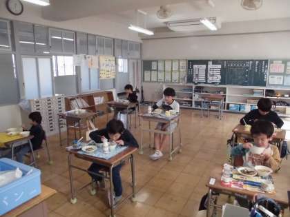給食をもりもり食べて、給食後の空き時間は時間割を変えたり、仲良く遊んだりしています。