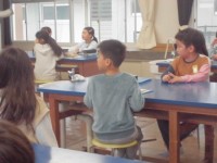 今日は低・中・高学年に分かれてお互いの漫才を見合う、N−1グランプリの練習でした。本番のように舞台に上がり、ライトを浴びて、笑顔で漫才ができました。