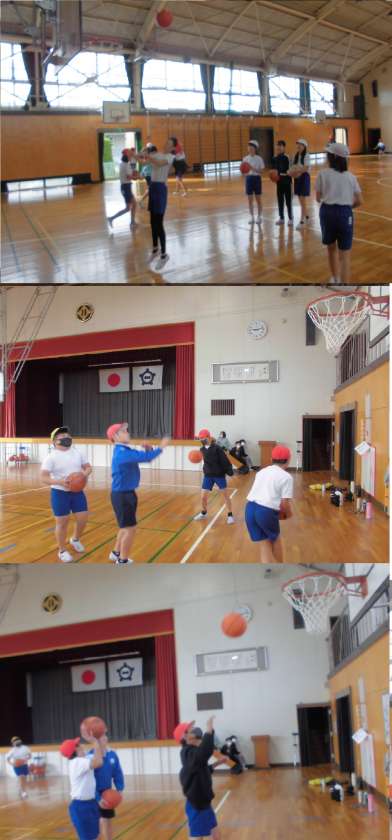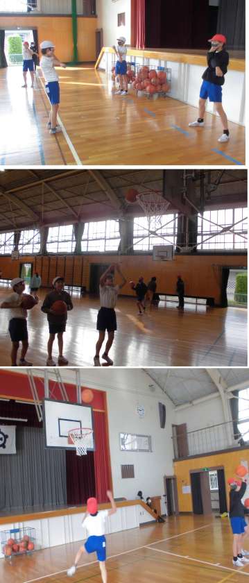 一定の時間で、何本のシュートを入れることができるかを練習しています。