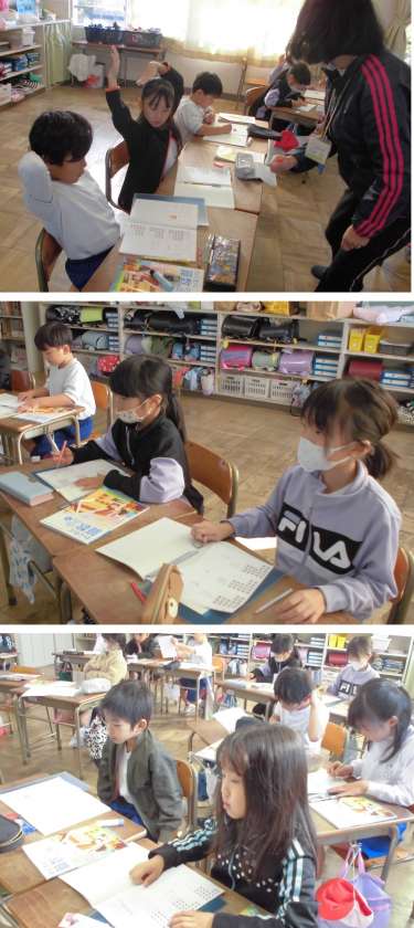 同じ数のまとまりに目っをつけて、かけ算を使って考えようとしています。