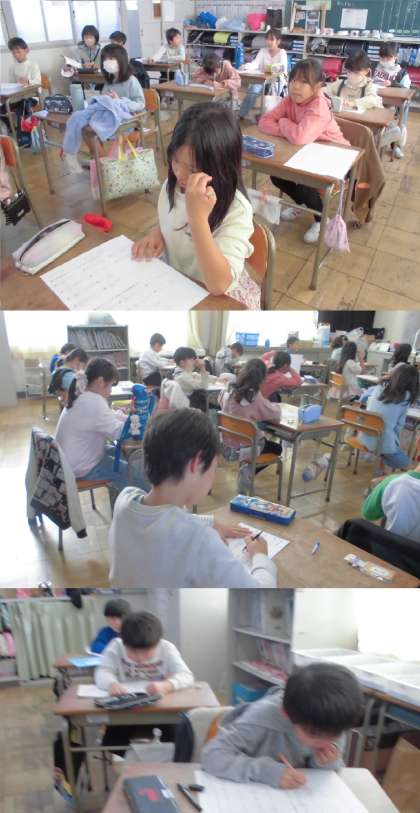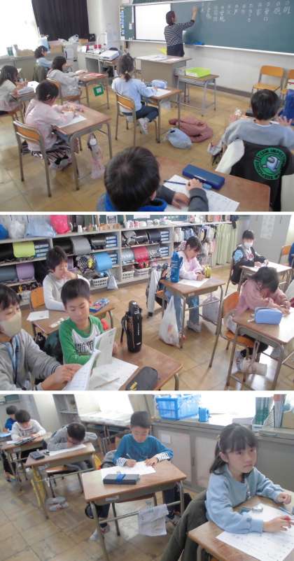 はねるところに気をつけて、漢字練習をしています。