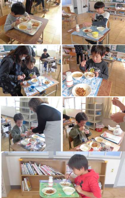 おいしくいただいています【11月20日(月)たんぽぽ】 公開日 2023/11/20 更新日 2023/11/20 たんぽぽ 今日の給食には、納豆が出ました。苦労して食べています。やっと食べることができた納豆。「おいしい」との声が聞かれました。