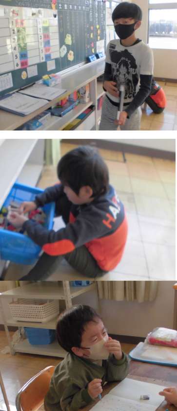 登校後は、連絡を書くなど自分がしなくてはならないことをがんばっています。