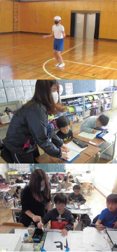 6年生は、短なわとびで、前とび、二重とび、あやとびをしています。