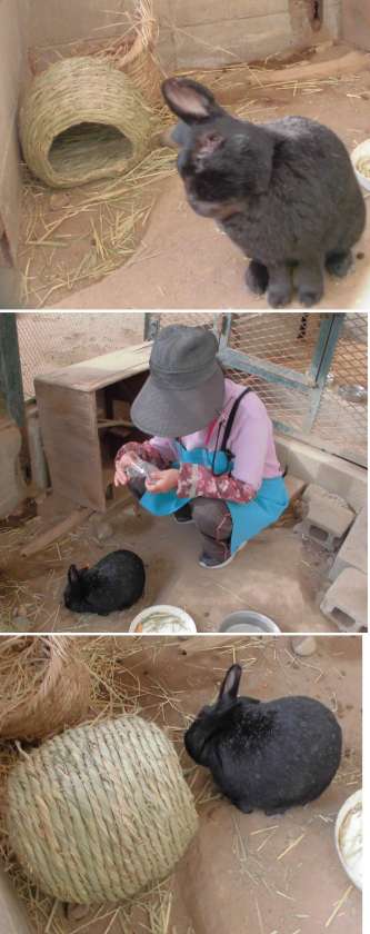 暖かくなってきました。休日管理員さんがみえて、「ショコラが元気になってきましたね」とおっしゃいました。休日管理員さんもショコラを心配してくださっていたようです。昨日、地域の方からいただいたプレゼント(ワラのウサギハウス)にも、少しずつ興味を示しているようです。みなさんのおかげで、ショコラがどんどん元気になっています。感謝 感謝です。