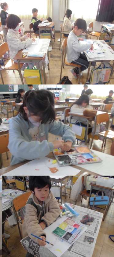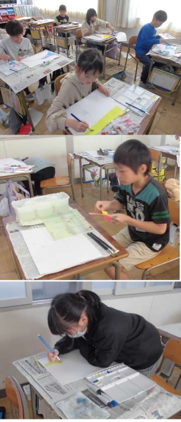 「あめあがり」という詩の絵をかいたり、「もちもちの木」の絵をかいたりしています。