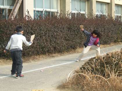 みんなで、かるた・竹とんぼ・はねつき・けん玉などの伝承遊びをしました。難しいものもありましたが、楽しく遊べました。2月8日には、おじいさん・おばあさんに学校へ来ていただいて、上手にできるコツなどを教えていただく予定です。みんな今から楽しみにしています。