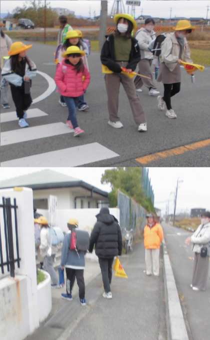 今日もたくさんのPTAの方々、見守り支援の方々に守られて登校を終えることができました。ありがとうございます。今日の下校は、1年と2年が14:55、3年〜6年が15:50の予定です。よろしくお願いします。