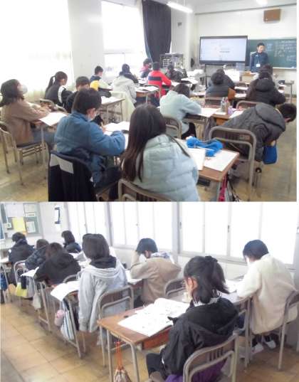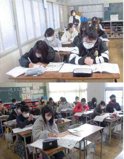 調理実習を終えて、よりよい調理をするために、食材の選び方などふりかえりをしています。