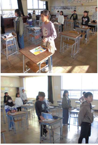 生き方講演会で来校いただく弓削田健介さんの「やさしい歌」を歌っています。