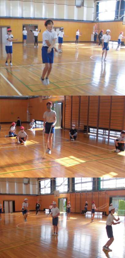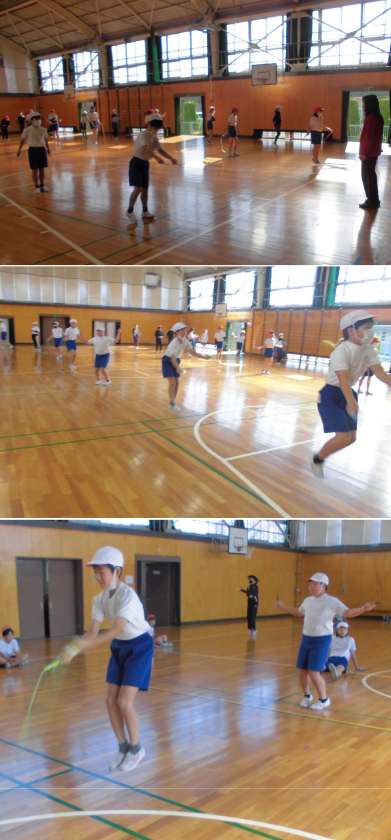 あや跳びと交差跳びの連続跳びに挑戦しています。