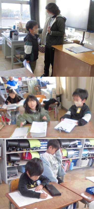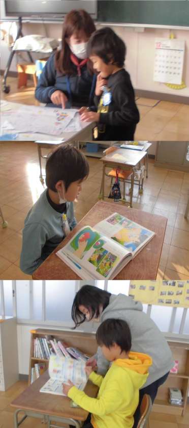 交流教室へ行き、今日の予定を確認しています。その後は、読書活動に入ります。