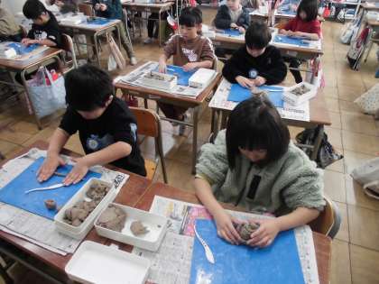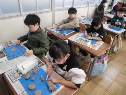 図工 ごちそうパーティー【1月15日(月)1年生】 公開日 2024/01/15 更新日 2024/01/15 1年 粘土をひねる・つまむ・のばす・くるくるする・つぶすなど工夫しながら、思い浮かべたごちそうを作りました。どの子も熱心に取り組んでいました。