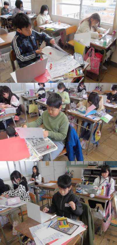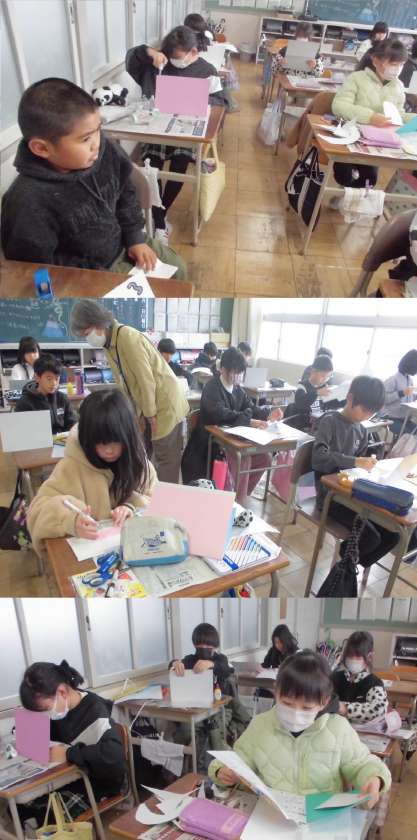 飛び出すしくみを使って、カードを作っています。