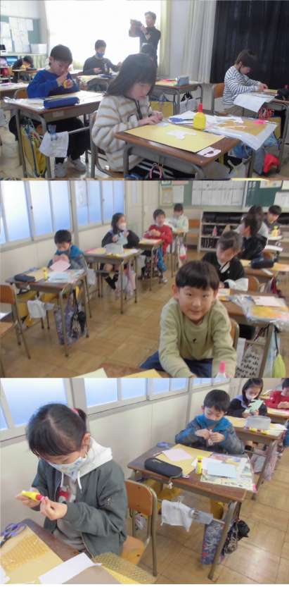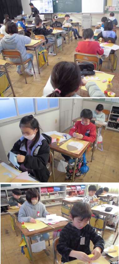 材料の特徴を捉えながらいろいろな材料で、工夫して版をつくっています。