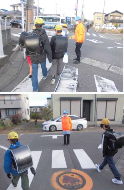 登校です【2月16日(金)全児童】 公開日 2024/02/16 更新日 2024/02/16 児童 冷たい風が吹いています。そんななか、今日もたくさんのPTA・見守り支援の方々に守られて登校を終えることができました。ありがとうございます。今日の下校は、1年と3年が14:55、2年と4年〜6年が15:50の予定です。よろしくお願いします。