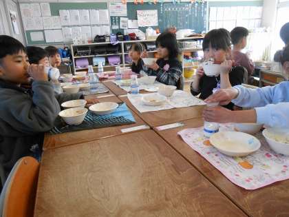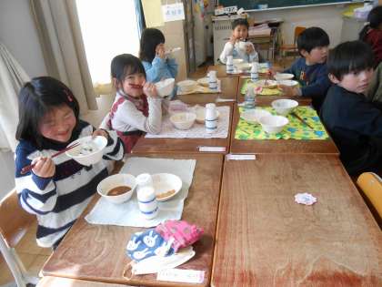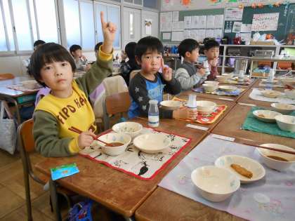 おいしくいただきます【2月16日(金) 1年生】 公開日 2024/02/16 更新日 2024/02/16 1年 今日の放送はクイズです。 「いつも調子が良い先生は?」 1校長先生 2〇〇先生 3△△先生 「わかった!1の校長(好調)先生だ!!」