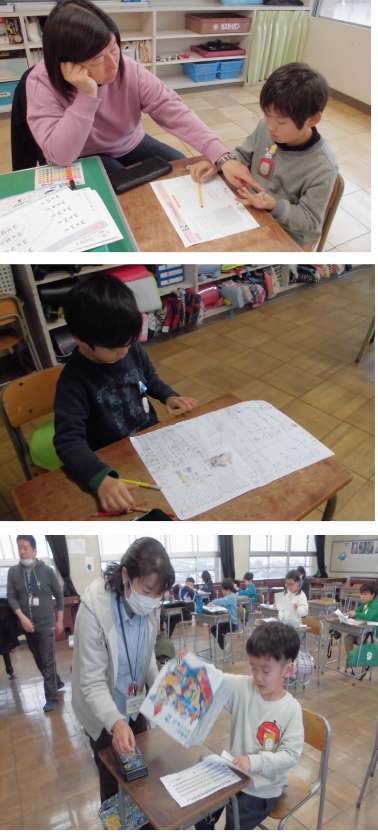 がんばっています【3月12日(火)たんぽぽ】 公開日 2024/03/12 更新日 2024/03/12 たんぽぽ 1年生は、「ずうっと ずっと 大すきだよ」の心に残った文を考えています。 2年生は、これまで勉強した音楽プリントをまとめています。 3年生は、計算の練習をしています。
