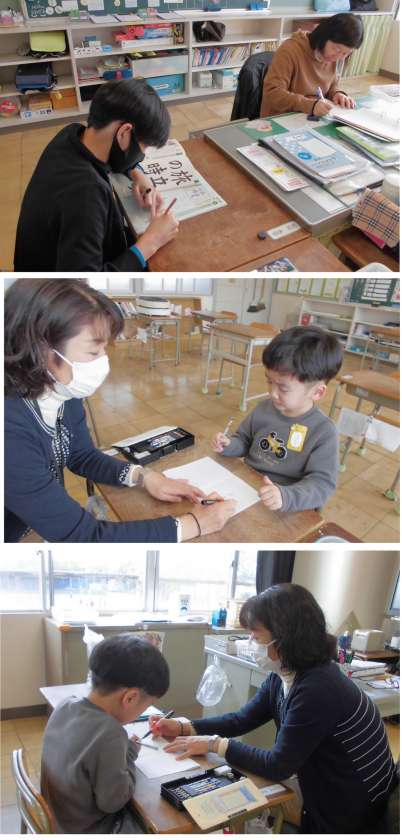 1年生は、「ずうっと ずっと 大すきだよ」の、心に残った文とそのわけを発表する練習をしています。