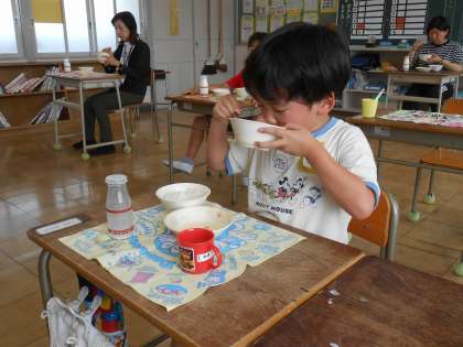 おいしくいただきます【6月10日(月)たんぽぽ】 公開日 2024/06/10 更新日 2024/06/10 たんぽぽ 今日もおいしくいただいています。 「はるさめスープおいしいよ!」 「春巻きおかわりしたいな〜。」
