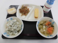 また、今日は、9月17日(火)の「十五夜」にちなんで、月のうさぎをイメージしたかまぼこが浮かんだ「月見のすまし汁」と素揚げしたさといもを甘辛い味で仕上げた「揚げさといもの甘がらめ」の組み合わせでした。十五夜は、美しい月をながめながらいもを供える習慣があり、いも名月と呼ばれることもあります。