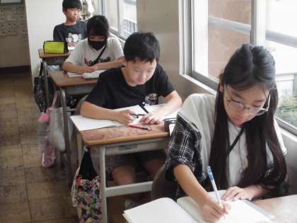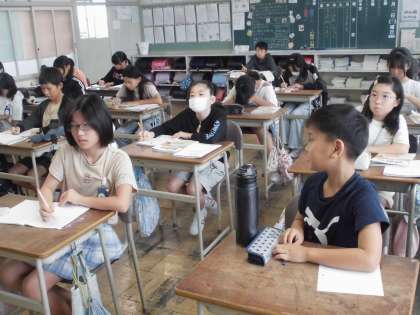 「どう並べたときに正方形ができるかを調べよう」というめあてで、長方形のタイルをいくつ並べると正方形になるのかという問題を解きました。児童たちは、公倍数を使えば問題が解けることに気づくことができました。そのことを生かし、その後の練習問題でも多くの児童が答えを求めることができました。
