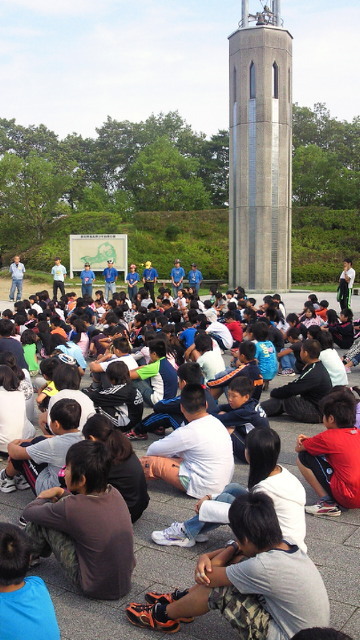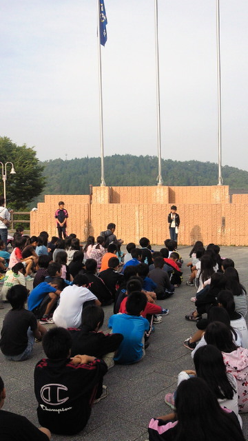 朝の集いです。ラジオ体操の後で学校の紹介をしました。今日も一日楽しく過ごします。