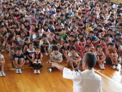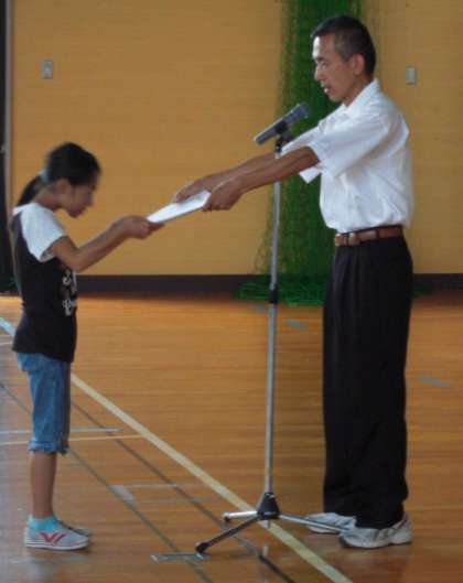 全校集会では、1学期に実施した写生大会の表彰伝達が行われたり、転入生の紹介があったり、校長先生のお話を聞いたりしました。