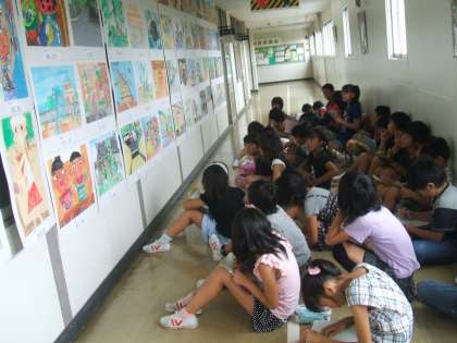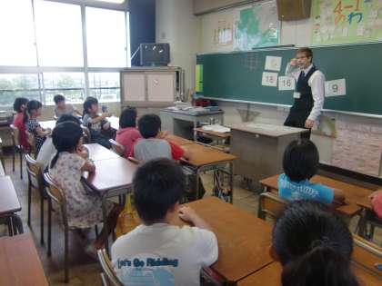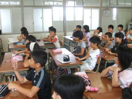 9月5日(月)の4年生 公開日 2011/09/05 更新日 2011/09/05 4年 2学期の英語活動は、エヴァン先生に教えていただきます。エヴァン先生はアメリカ出身です。 今日は「How many 〜 ?」の表現を教えていただきました。 【写真1、2枚目】エヴァン先生と英語活動 【写真3枚目】写生会の絵の見学